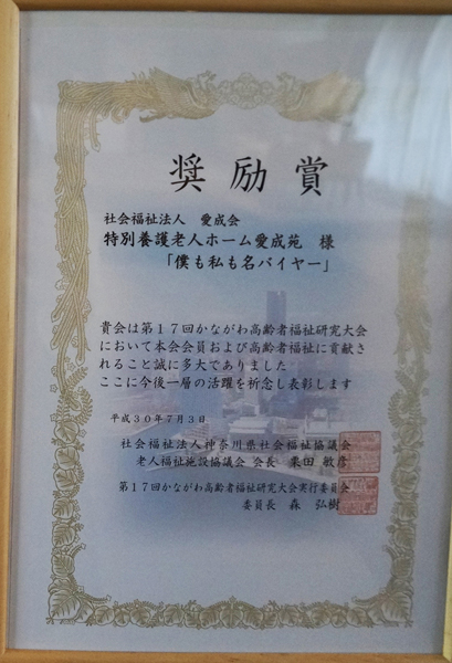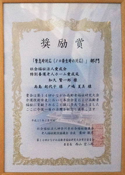 | 「最期まで自分らしく生きる介護 〜死を迎える介護から生を全うする介護へ〜」 優秀賞 |