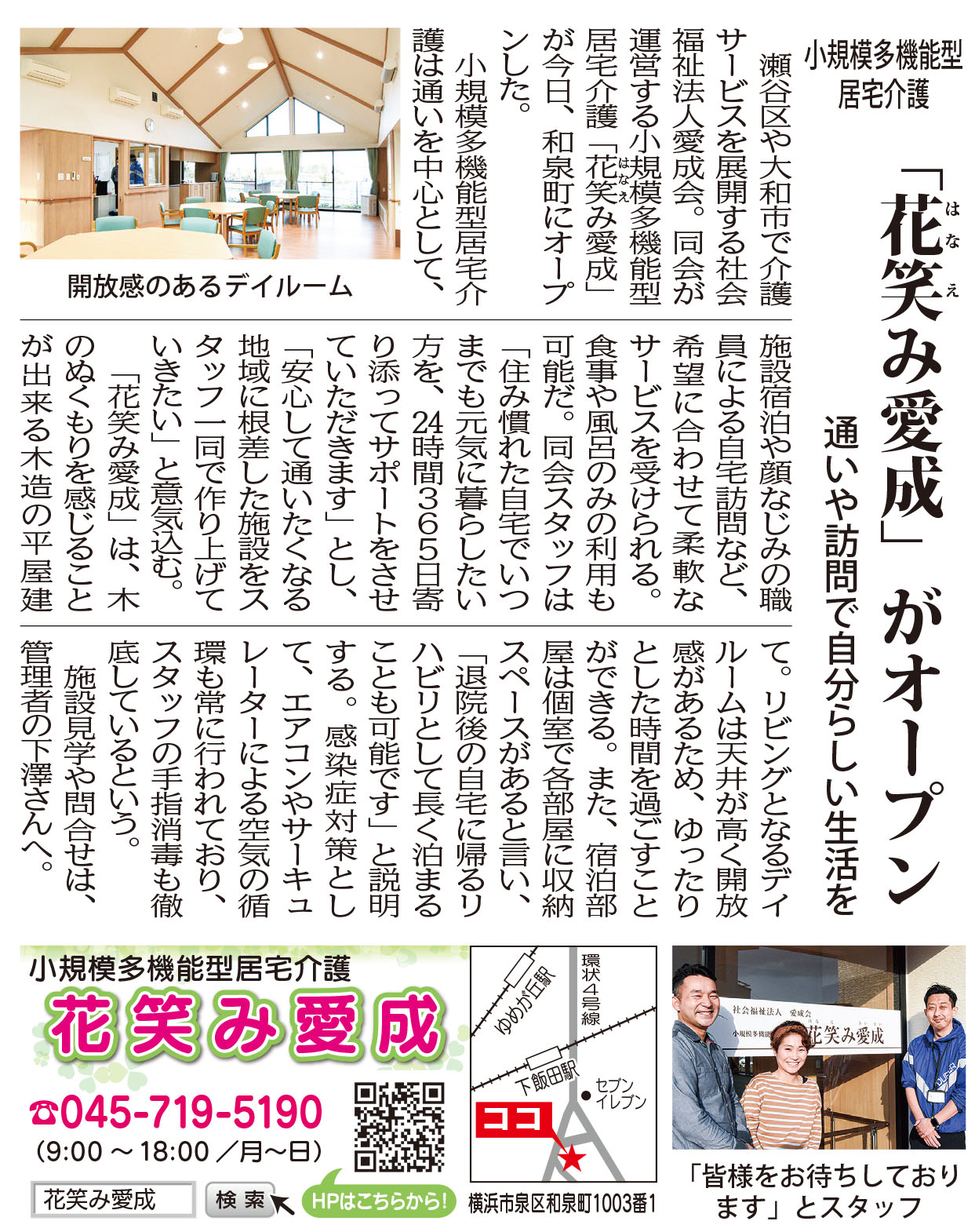 令和3年4月1日に開所致しました、同法人の 「花笑み愛成」の記事を掲載して頂きました。