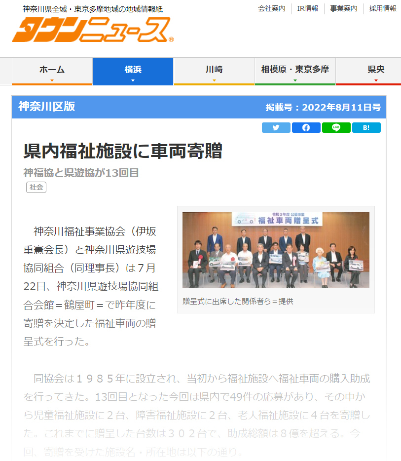 8月11日号 福祉車両の贈呈式の様子がタウンニュースに掲載されました。