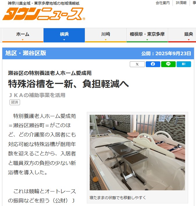タウンニュース瀬谷区版にて、愛成苑の特殊浴槽についての記事が掲載されました。