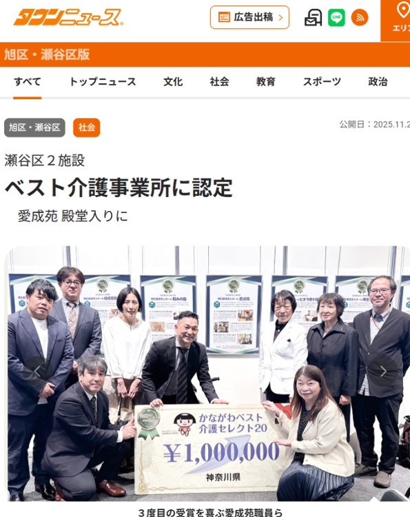 11月20日(木)発行の「タウンニュース瀬谷区版」に、愛成苑が掲載されました。