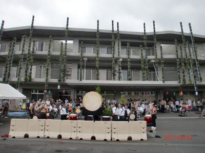 あいにくの曇り空ではありましたが、開催を知らせる太鼓の音と共に地域の方たちをはじめ大勢の方々に参加して頂くことができました。